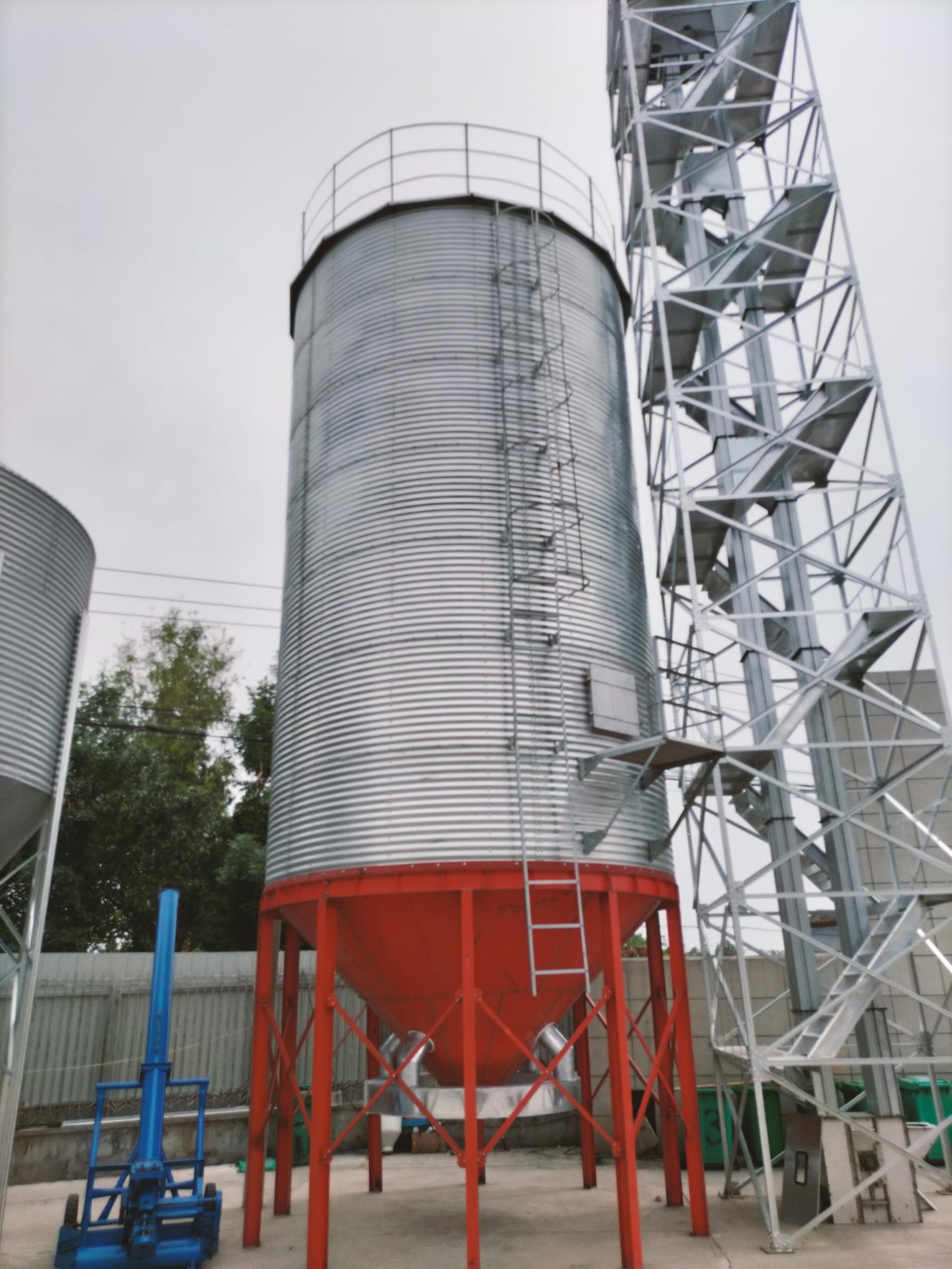錐底式鋼板倉(cāng)儲(chǔ)存物料自流出倉(cāng),自凈效果好,無(wú)殘留物。該倉(cāng)適用于儲(chǔ)量適中,經(jīng)常清倉(cāng)的種子、面粉、飯鍋料、養(yǎng)殖、水泥、化工等行業(yè)。錐底式鋼板倉(cāng)鋼支撐結(jié)構(gòu)堅(jiān)固、錐底強(qiáng)度較高。錐底坡度為40°、45°、60°三種,其中60°錐底鋼板倉(cāng)適用于儲(chǔ)存粘度較大的顆粒和粉狀物料。特點(diǎn):自流出倉(cāng),不用人工,節(jié)約能源,基礎(chǔ)造價(jià)低。